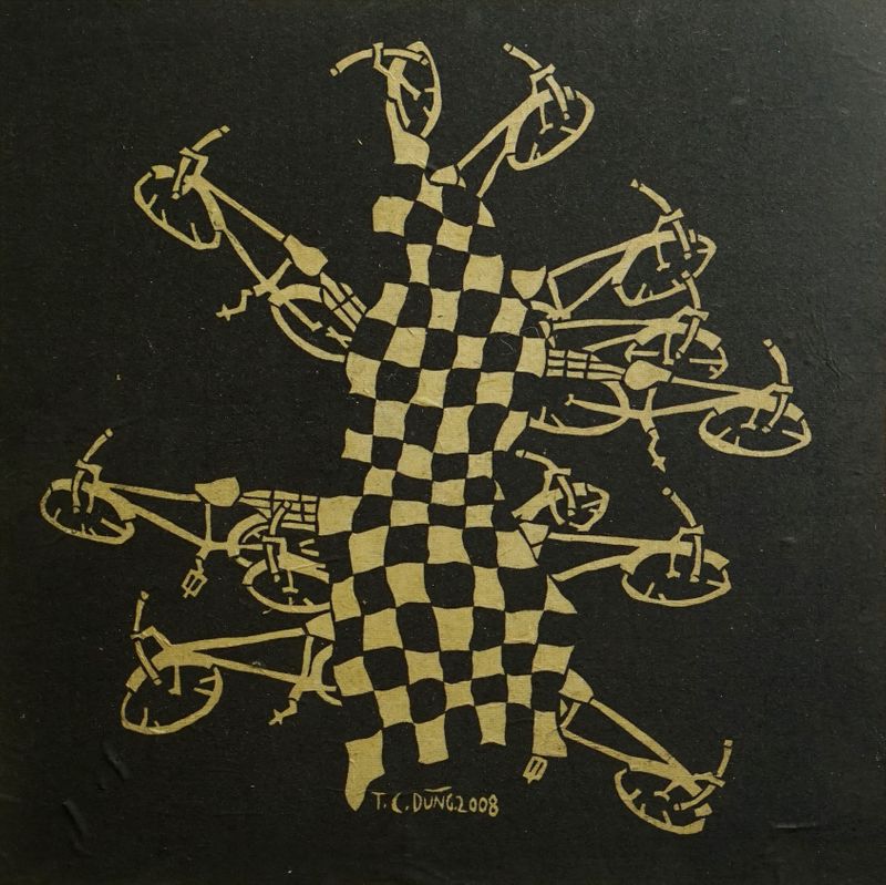 Tran Cong Dung, born in 1969 in Tuyen Quang, now lives and works in Hanoi. Starting to make a major mark by sculpture lacquer painting of bicycles, Tran Cong Dung is gradually familiar to the art lovers in Vietnam by artworks showing simple existing things in the life through not only shrewd thoughts but also funny styles with new and unique languages. His artworks consist of diverse types and materials such as lacquer, wood carving, sculpture and ceramic… With each material, Tran Cong Dung shows his virtually unlimited creativeness with his versatile talent.