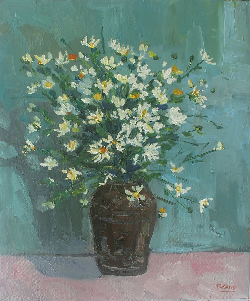 Name of the painting: Flower of Memories Size: 76x76 cm Material: Oil on canvas CArtist: Nguyen Thi Thu Hien